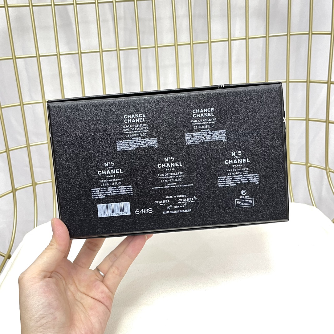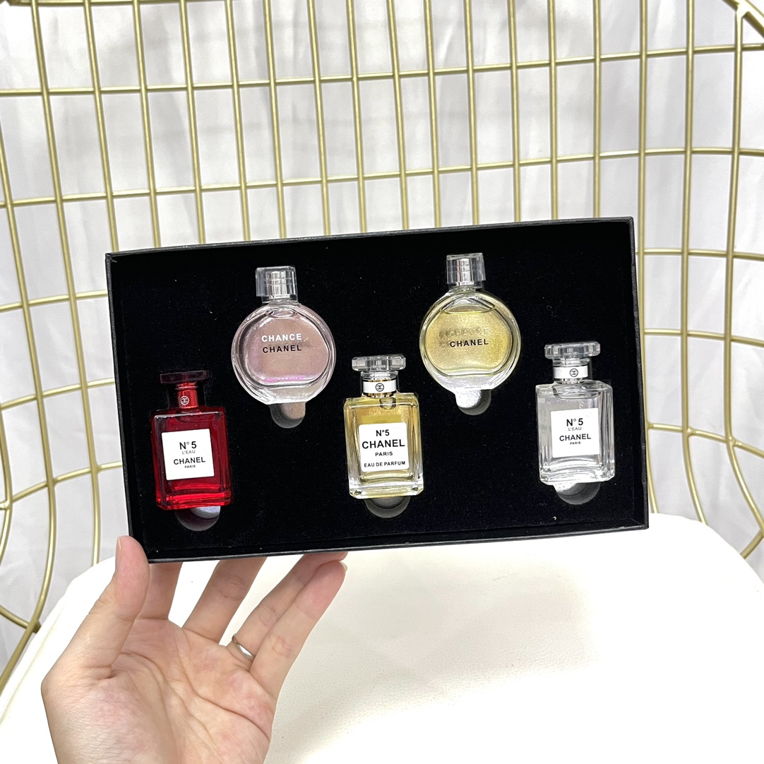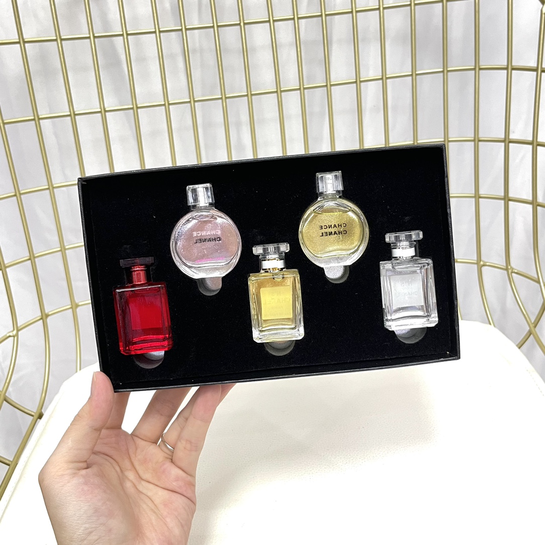 - Set includes: N°5 Red Limited Edition (7.5ml), N°5 L'Eau (7.5ml), N°5 Eau Fraiche (7.5ml), Chance Eau Tendre (7.5ml), Chance Eau Vive (7.5ml)