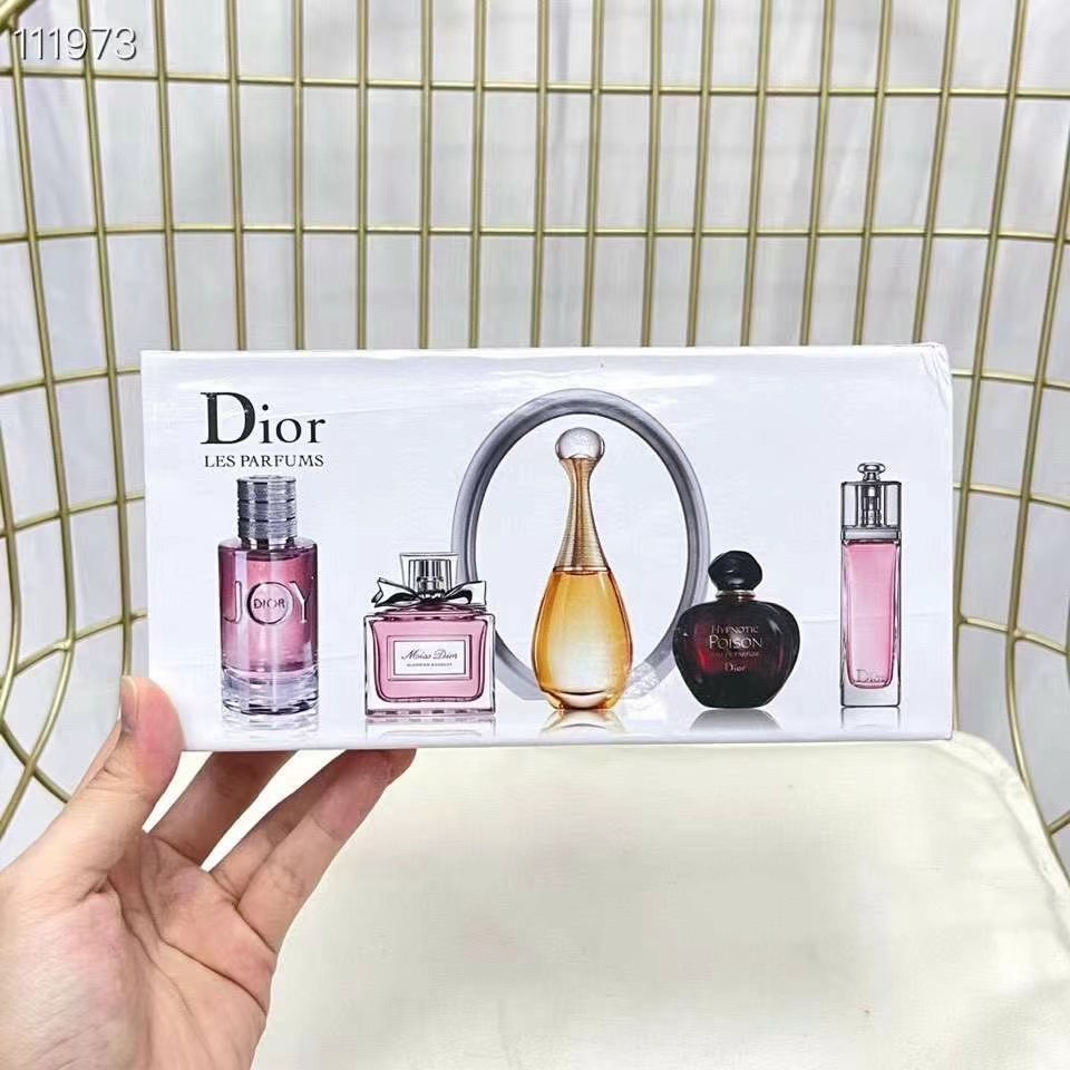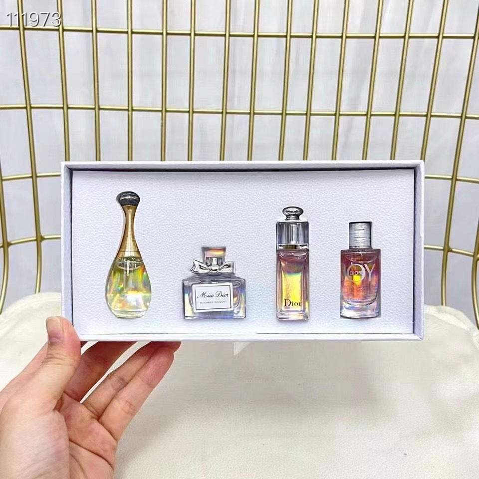Discover your signature scent with this Dior perfume miniature set. Includes four 5ml bottles, ideal for sampling or travel.