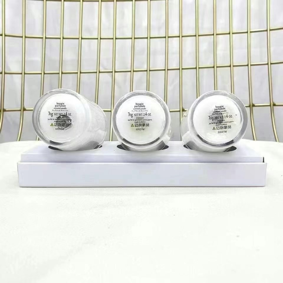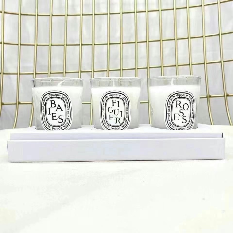 Diptyque Scented Candle Set - Rose, Berry, Fig - 70g x 3 White Bottle