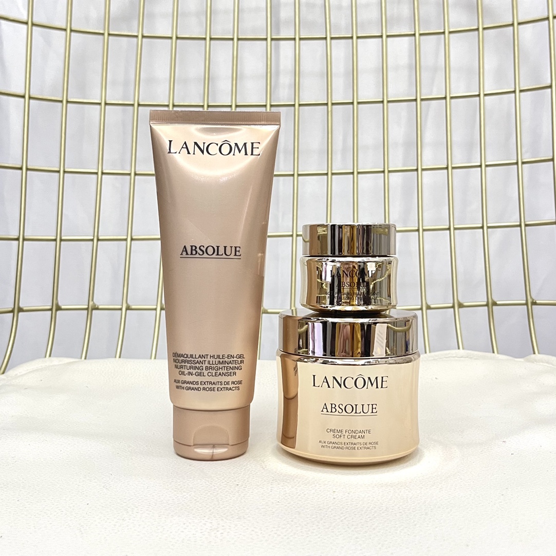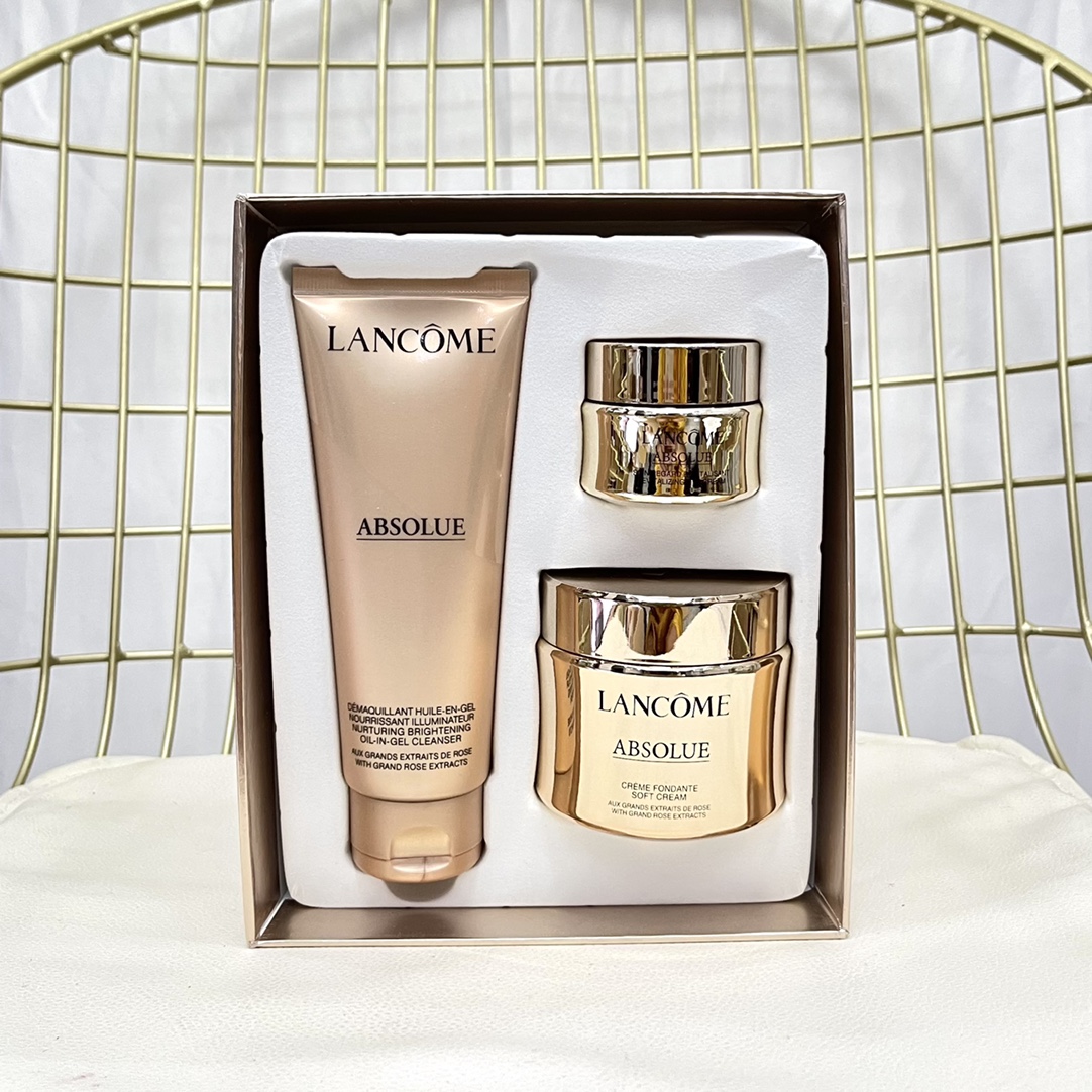 Indulge in Lancome's Absolue skincare set! Includes a cleanser, soft cream, and eye cream for a radiant, youthful complexion. Perfect for daily use.